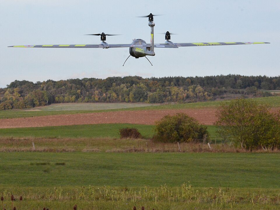 Bewußt wurde das neue System der Bergwacht Rhön-Spessart übergeben, da das Team seit Jahren über große Erfahrung Im Umgang mit Drohnen verfügt, sagte Uwe Kippnich. Der Standort Oberelsbach wiederum ist aus taktischen Gründen ideal, da er sich geographisch in der Mitte von Deutschland befindet. Das fliegende System Trinity ist mit einer hochauflösenden Kartierungs-Kamera ausgestattet und kann, im Gegensatz zu den typischen Kopterdrohnen, große Flächen, mehrere Quadratkilometer, in kurzer Zeit kartieren. Uwe Kippnich nannte als Beispiele einen Waldbrand, Hochwasserluftaufnahmen, wie im Ahrtal oder 2024 in Österreich. Gerade im Ahrtal seien die Luftaufnahmen von großer Wichtigkeit für die Einsatzkräfte gewesen. Diese Bildaufnahmen fließen in ein gesamte Lagebild ein, dass dann den verschiedenen Einsatzkräften zur Verfügung steht.