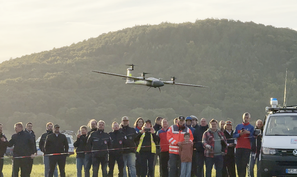Hervorragend wurde die jahrelange gute und erfolgreiche Zusammenarbeit mit dem Bayerischen Roten Kreuz bewertet. Das neue Drohnensystem könne große Flächen abdecken und liefere hervorragende, hochauflösliches Bildmaterial. Uwe Kippnich von der Stabsstelle Sicherheit und Forschung beim Bayerischen Roten Kreuz (BRK) sagte, dass die Drohne, je nach Bedarf, auch außerhalb Bayerns eingesetzt werden kann. Bei der Vorführung des neuen Drohnensystems erfuhren die Gäste, dass die Drohne keine Start- und Landebahn benötigt. Sie startet senkrecht in die Luft und fliegt dann anhand der vorgegebenen „Mission“, wie Uwe Kippnich erläuterte. Dabei fotografiere das Gerät mit einer hochauflösenden Kartierungskamera immer wieder. Das Material, das Zentrum für satellitengestützte Kriseninformation am Deutschen Zentrum für Luft- und Raumfahrt in Oberpfaffenhofen mit den dortigen Satellitenbildern zusammengeführt wird, soll so schnellere und gezieltere Rettungsoperationen ermöglichen.