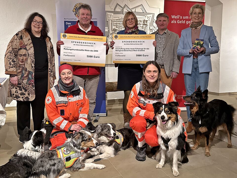 Bad Königshofen (hf). Die Lions Clubs Bad Neustadt und Bad Königshofen konnten durch ihre Weihnachtslos-Aktion eine Gewinn erwirtschaften, der nun als Spende an soziale Einrichtungen weitergegeben wurde. Profitiert haben davon das Mehrgenerationenhaus Bad Königshofen, das dringend einen Fahrzeug benötigt und die Rettungshundestaffel des BRK Rhön-Grabfeld für notwendige Anschaffungen und Finanzierung eines eigenen Fahrzeugs.
