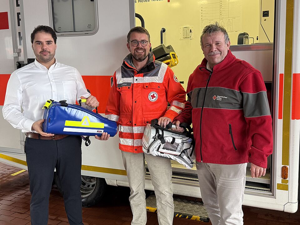 Bad Neustadt (hf). Im Rettungswagen der BRK Bereitschaft Bad Königshofen ist nun ein nagelneues Beatmungsgerät installiert. Die Anschaffungskosten betrugen 12.000 Euro. 6.000 Euro, davon eine große Spende in Höhe von 5.000 Euro, kamen von Oliver Haschke, dem gleichnamigen Bauunternehmen in Bad Königshofen. Die Restkosten von 6.000 Euro übernahm der BRK Kreisverband Rhön-Grabfeld. BRK Kreisgeschäftsführer Ralf Baumeister dankte nach dem Einbau des neuen Gerätes den Spendern und sagte, dass es nur durch die großzügige Spendenbereitschaft der Rhön-Grabfelder möglich ist, das Equipment des BRK immer auf dem neuesten medizinischen Stand zu halten. Wachleiter Rasmus Brand sagte dazu, dass das neue Beatmungsgerät dringend notwendig war, da das bisherige „in die Jahre gekommen ist.“ Das neue Gerät ist in der Lage Intensivpatienten zu beatmen. Außerdem kann jetzt der Patient auch nicht invasiv beatmet werden, dies kann in der präklinischen Notfallversorgung für den Patienten lebensrettend sein. Nicht Invasive Beatmung heißt, dass der Patienten nicht mehr ausreichend atmet. Das wiederum übernimmt unterstützend das neue Beatmungsgerät. Mit dem bisherigen Gerät war dies nicht möglich, erläuterte der Wachleiter. Er erinnerte in diesem Zusammenhang an die Spendenfreudigkeit der Firmen und Privatpersonen im Altlandkreis Königshofen. Das habe sich kürzlich erst bei dem neuen In Dienst gestellten Fahrzeug gezeigt (wir berichteten).