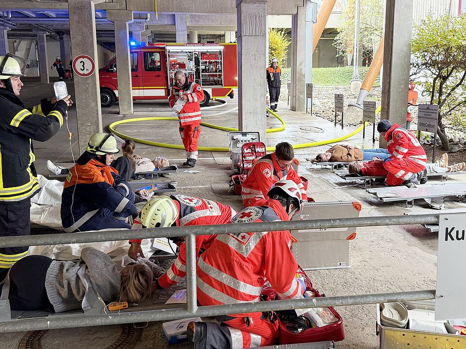 Ungewöhnliches Übungsszenario der Rettungskräfte am Campus