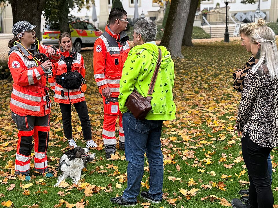 Ein besonderes Highlight der Veranstaltung war die praxisnahe Vorführung der Rettungshundestaffel des BRK Rhön-Grabfeld. Das Team um die Ausbilderinnen Ida Storch (Staffelleiterin), Maria Waibl und Alexandra Klinger besteht aus 17 engagierten Mitgliedern sowie insgesamt 13 Hunden – darunter vier geprüfte und einsatzfähige Rettungshunde
